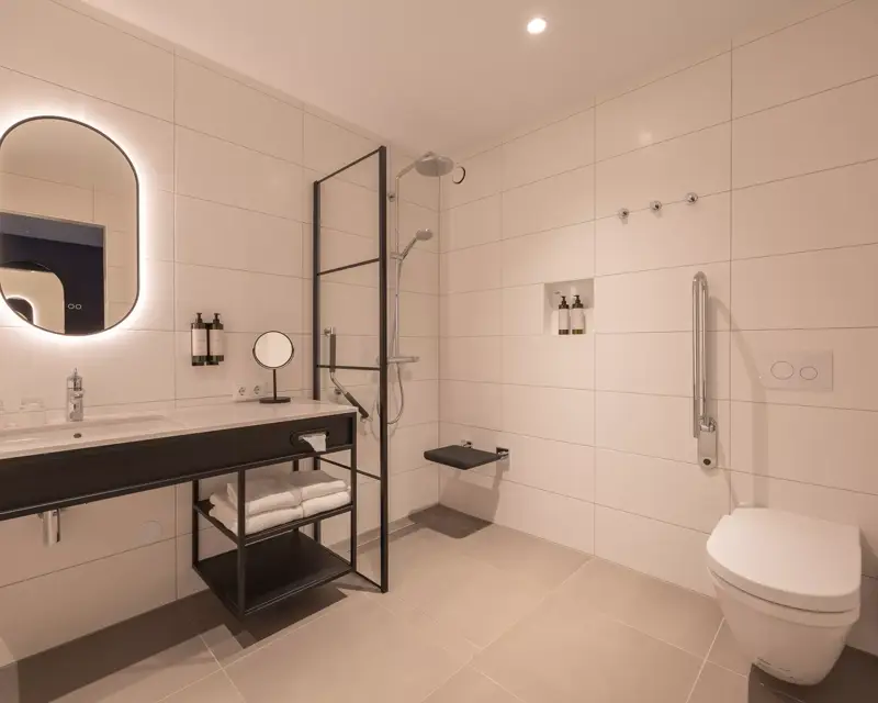 Im Hotel finden Sie eine Behindertentoilette, die mit dem Aufzug erreichbar ist.