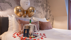 Would you like to spend your wedding night in our hotel? Then this honeymoon package makes the big day complete! The package contains a card with a personal message, rose petals, a 'Just Married' balloon with helium, 8 heart balloons spread around the room, a box of macarons and a bottle of bubbles. Costs: €35.00