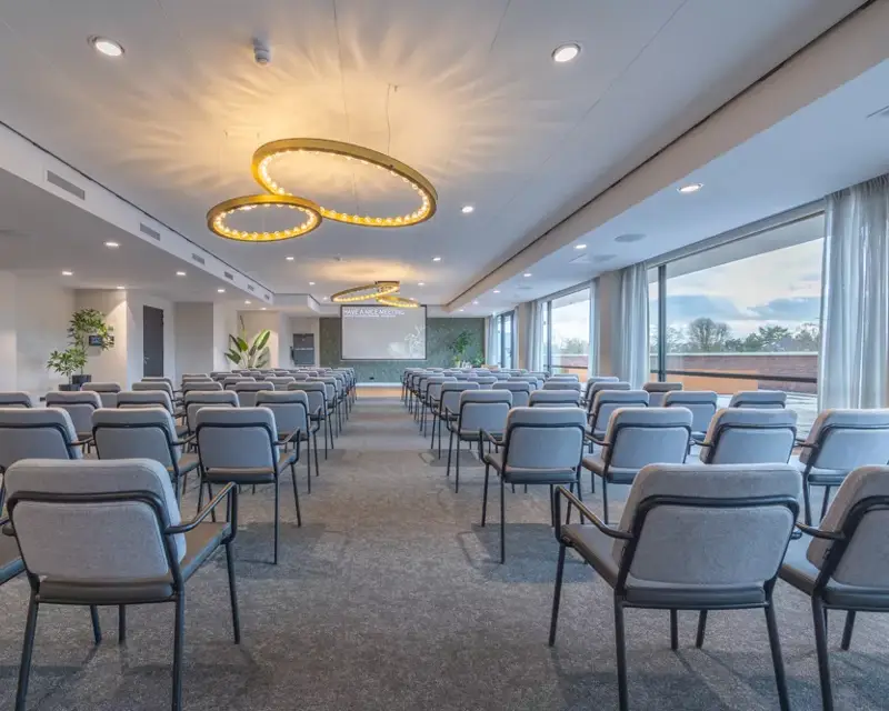Spacious meeting room on the first floor. The room borders a large terrace and can be expanded by connecting adjacent rooms.