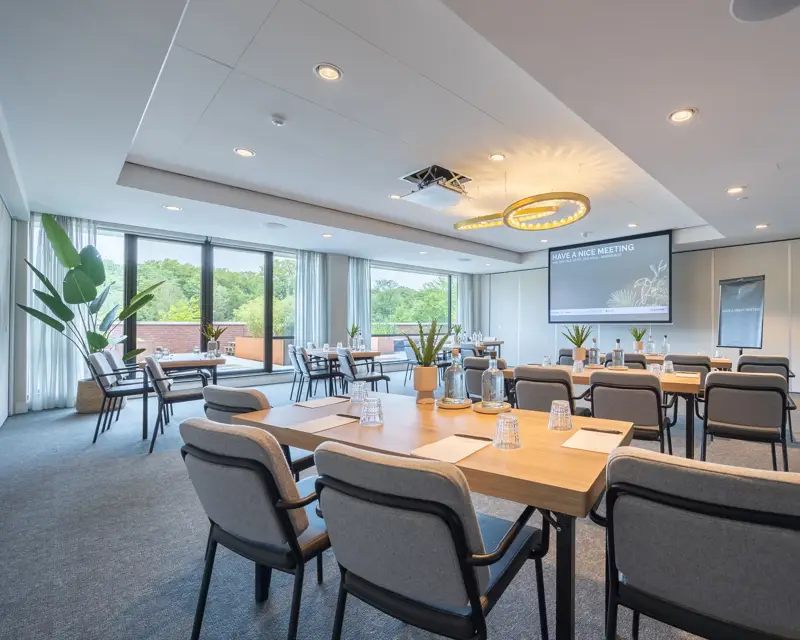Tasteful, bright meeting room located on the 1st floor. The room adjoins the terrace and can be connected to adjacent rooms.