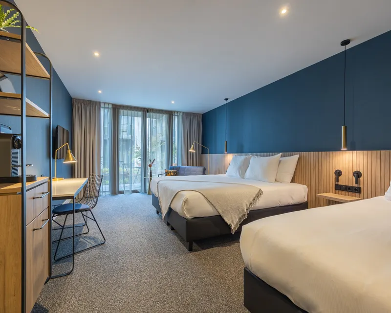 Onze ruime Superior Triple kamers hebben net als de Superior kamers een moderne en luxe uitstraling. Naast een groot tweepersoonsbed beschikt deze kamer over een apart derde bed. Het tweepersoonsbed kan ook als twee losse bedden worden opgemaakt (op aanvraag). Tevens kan er nog een babybed op de kamer bijgezet worden. In de badkamer is een inloopdouche met regendouche en een bad aanwezig. Verder is er een apart toilet, zijn er koffie- en theefaciliteiten en is er een koelkastje die gevuld kan worden. Alle Superior Triple kamers hebben een (Frans) balkon of terras.