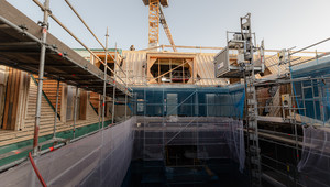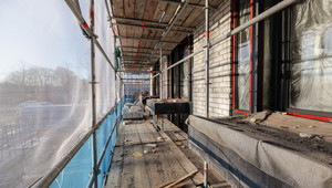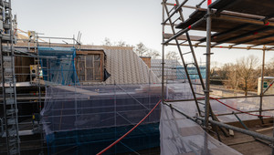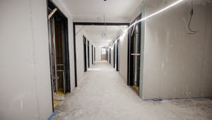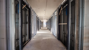 De laatste maand van dit jaar is er nog hard doorgewerkt door onze mannen. In de nieuwbouw begin je nu echt de gangen van de hotelkamers te zien. Ook krijgen de kamers zelf meer vorm en zijn de kozijnen geplaatst. Het fijne is ook dat vlak voor kerst alles nog wind- en waterdicht is gemaakt!